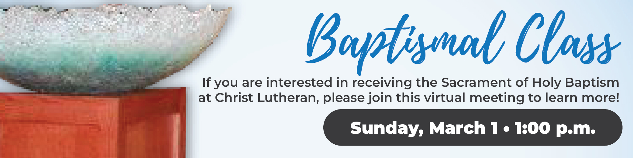 Join with a pastor of Christ Lutheran each week to continue the discussion of our current book and how it relates to our Christian lives today. Open to all. This class also meets in person at Christ Providence (W150).